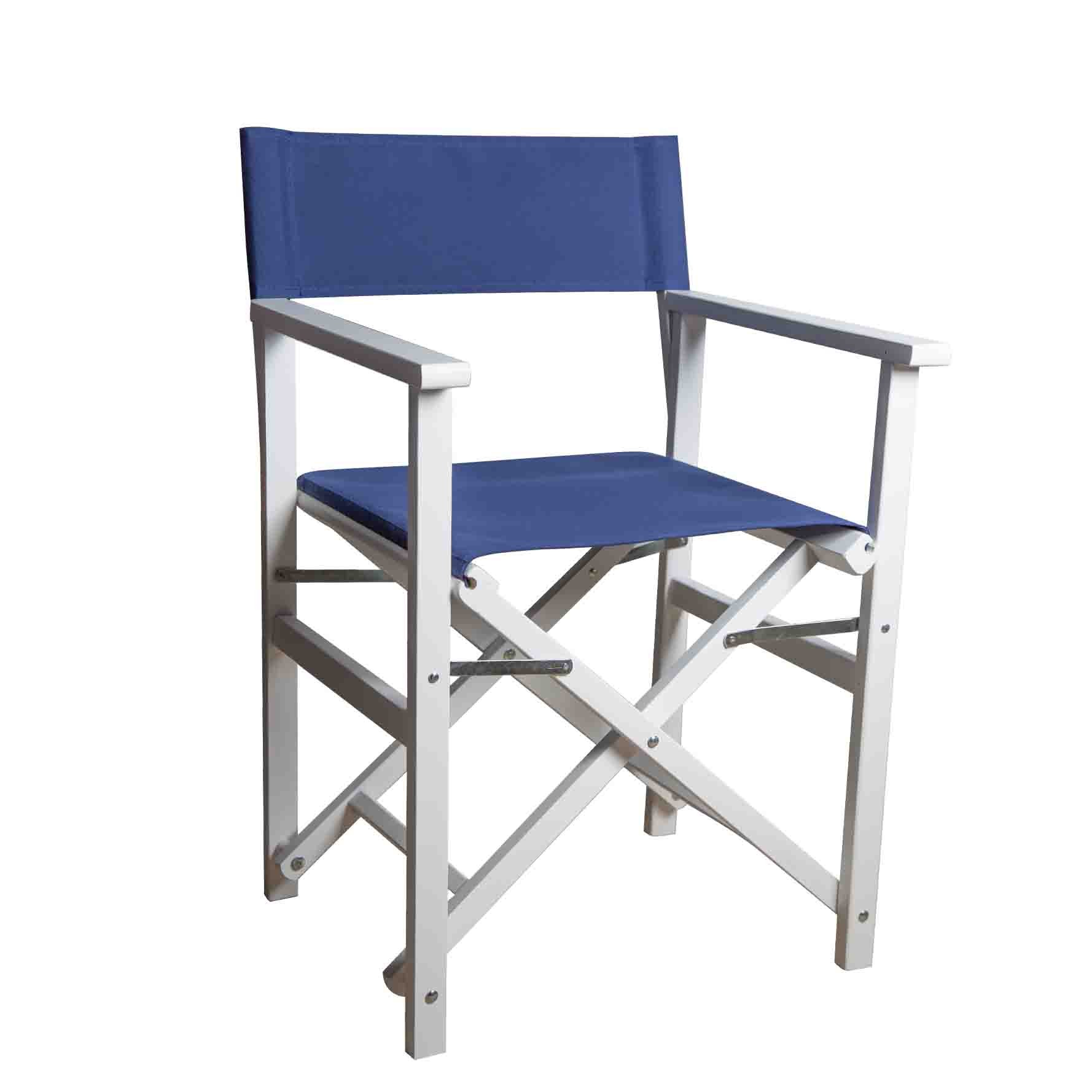 Sedia regista richiudibile bianca con stoffa blu 50 x 56 h86 cm