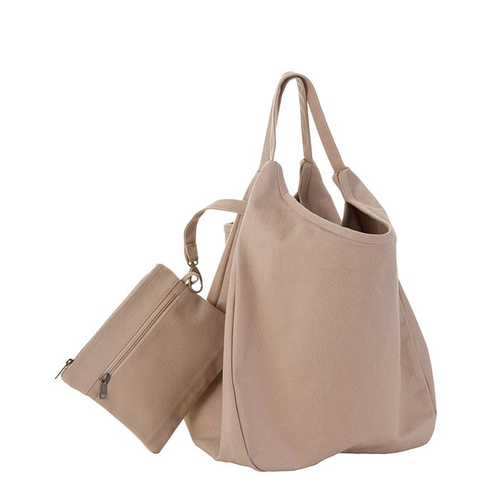 Borsa 100%cotone con pochette colore lino 38 x 22 h44 cm
