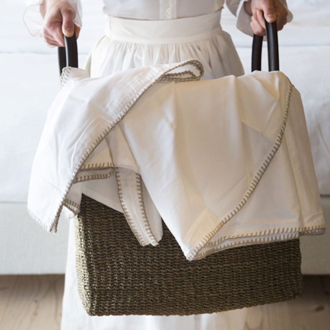Set 3 cesti in abaca lino con manici in cuoio 40 x 50 h48 cm