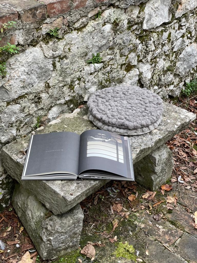 Cuscino nodini pecora feltro grigio scuro handmade d36 cm