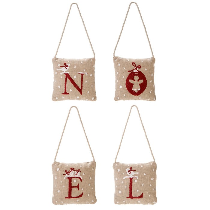 Set 4 cuscini ricamati noel 10 x 10 cm