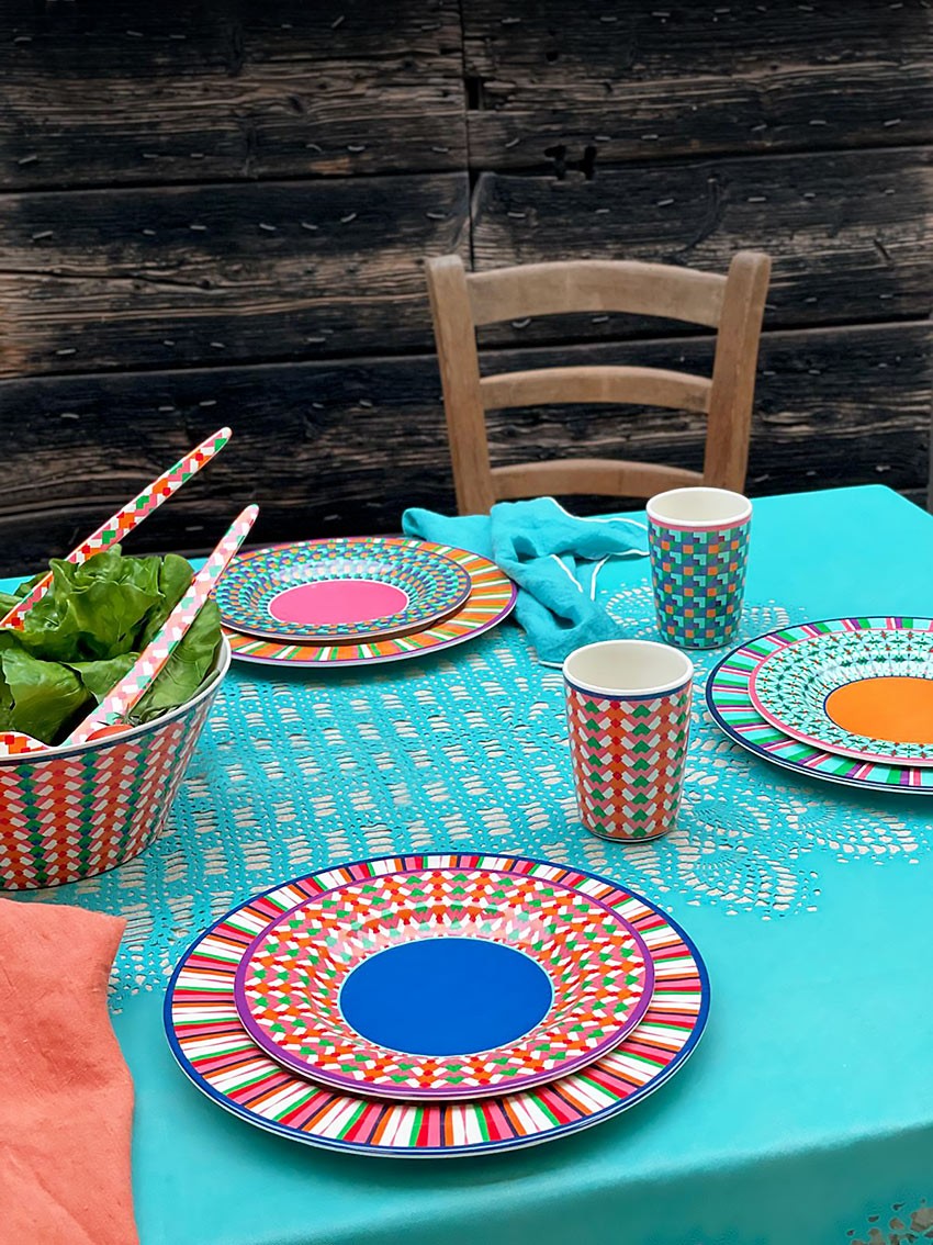 Set di 4 piatti dessert in melamina top quality dal diametro di 21 cm. particolarmente resistenti ai graffi. i piatti dessert fanno parte della nuova linea pop stripe. ogni pezzo di questo set presenta delle fantasie e dei colori diversi; questa caratteristica permette di utilizzarli in molteplici abbinamenti di colore. sono perfettamente abbinabili sia alle nostre tovaglie in vinile, che alle tovaglie e ai tovaglioli in lino della nostra collezione. design moderno e coloratissimo che renderà gioiose le vostre tavole. il materiale presenta una funzionalità incredibile in quanto la melamina è: adatta al contatto con gli alimenti - non assorbe odori - lavabile in lavastoviglie - facile da trasportare - facile da impilare - può andare sia in frigo che in freezer in quanto sopporta temperature da -20 a + 70 gradi. non utilizzabile in forno e in microonde. ideale per eventi, catering, feste outdoor, feste in piscina, camper, pic nic, barche, aperitivi. utilizzato con grande successo sia nel privato che nella ristorazione. la collezione comprende le ciotole(lgpcol1), i piatti dessert(lgpcol2), i piatti piani(lgpcol3), i bicchieri(lgpcol4), la ciotola diametro 25 cm(lgpcol5), il piatto ovale(lgpcol6), le posate da insalata(lgpcol7).
