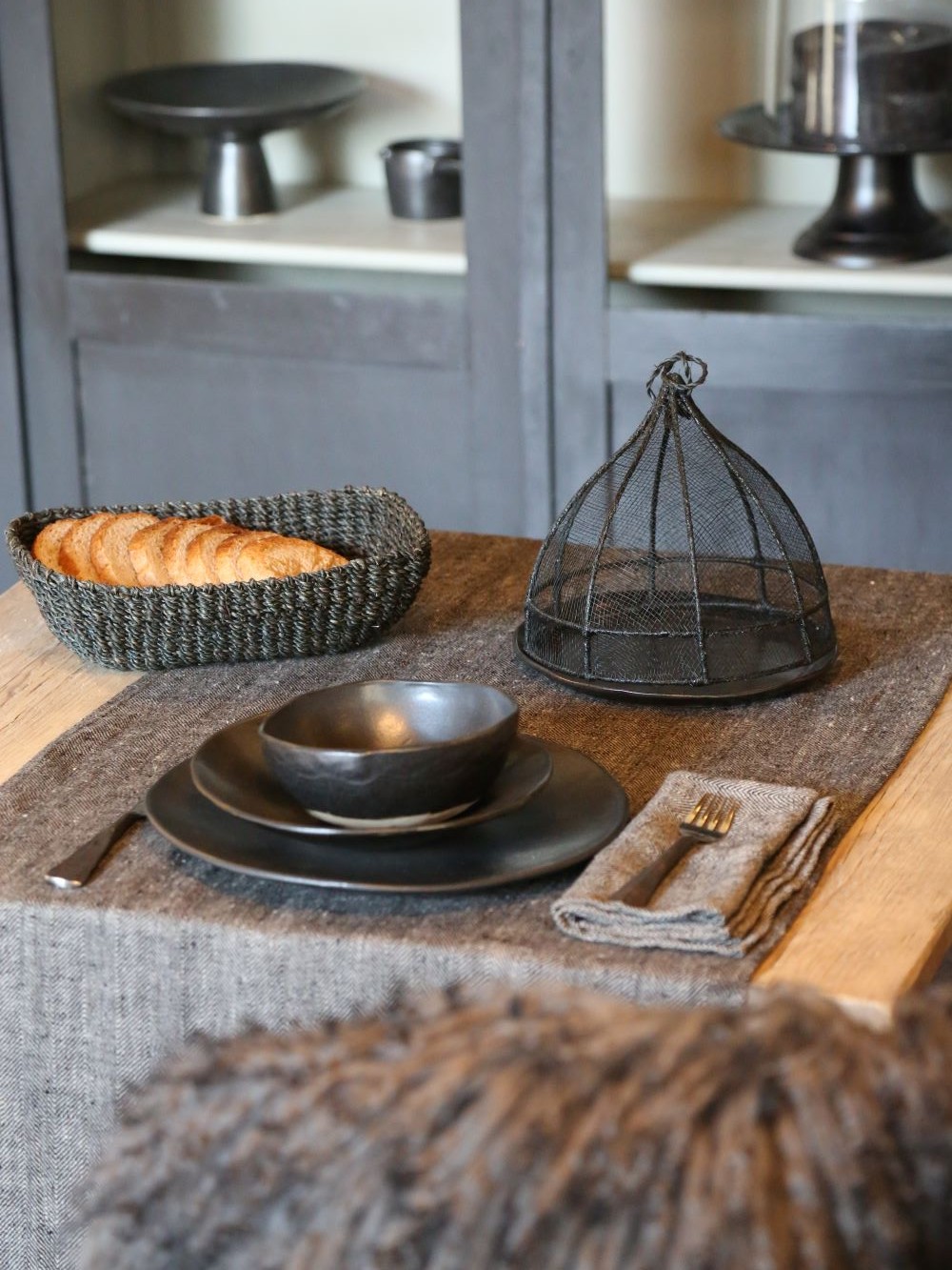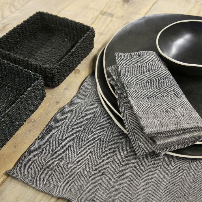 Tovagliolo 100% lino spigato grigio/nero 40 x 40 cm