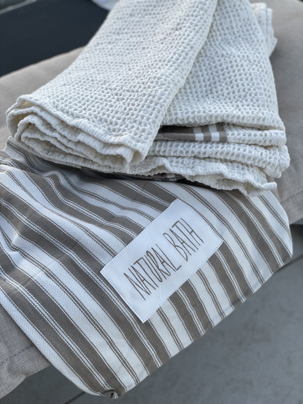 Asciugamano waffle "natural bath" con busta 110 x 160 cm