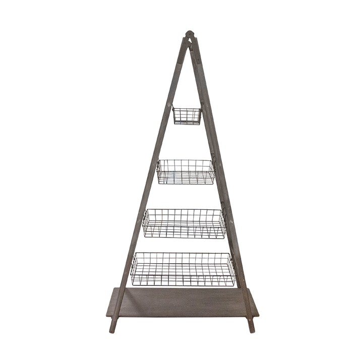 Scala ad albero in legno naturale 4 cesti scuri 100 x 41 h188 cm