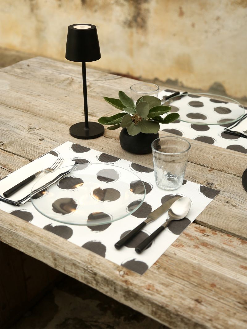 Tovaglietta bianca pois neri 75%pvc 25%poliestere 33 x 45 cm