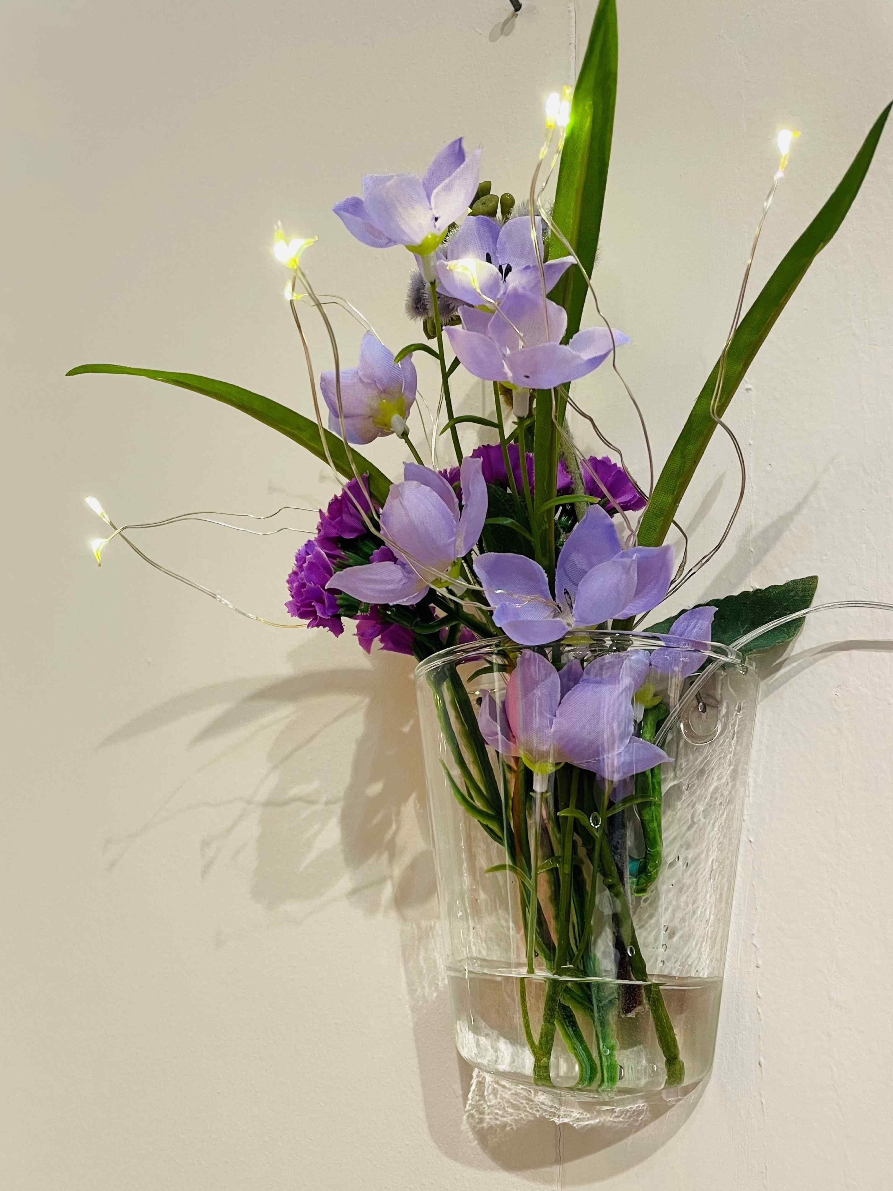 Ramo di 10 luci per bouquet con batteria (acqua) h40 cm