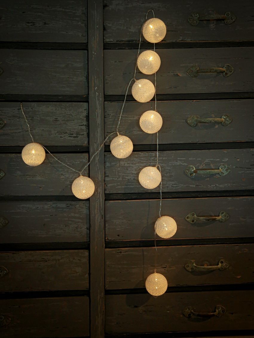 Filo di 10 palle fili colore bianco con batteria 180 cm