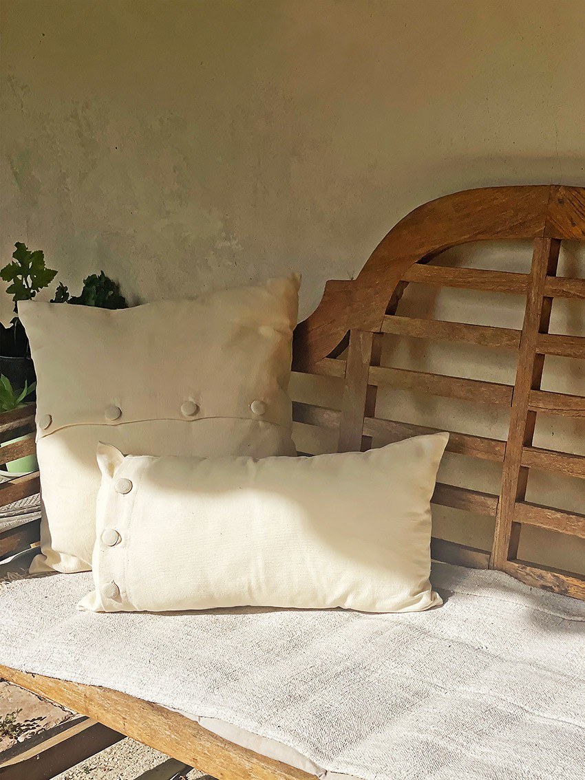 Fodera cuscino in cotone colore panna con bottoni 100 x 100 cm