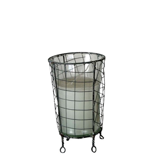Gabbia di rete con candela in bicchiere di vetro h12 cm