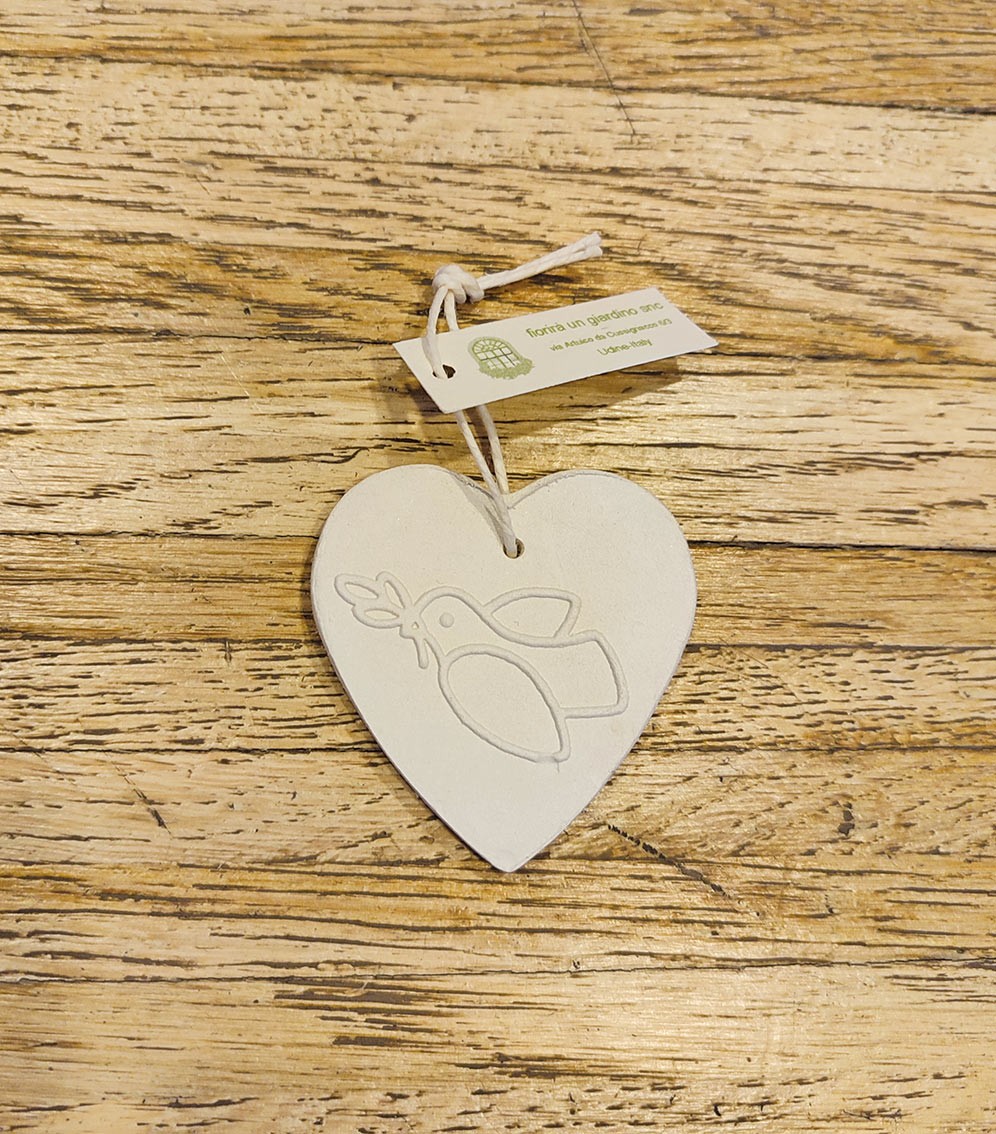 Diffusore cuore terracotta bianco con colomba h5.5 cm