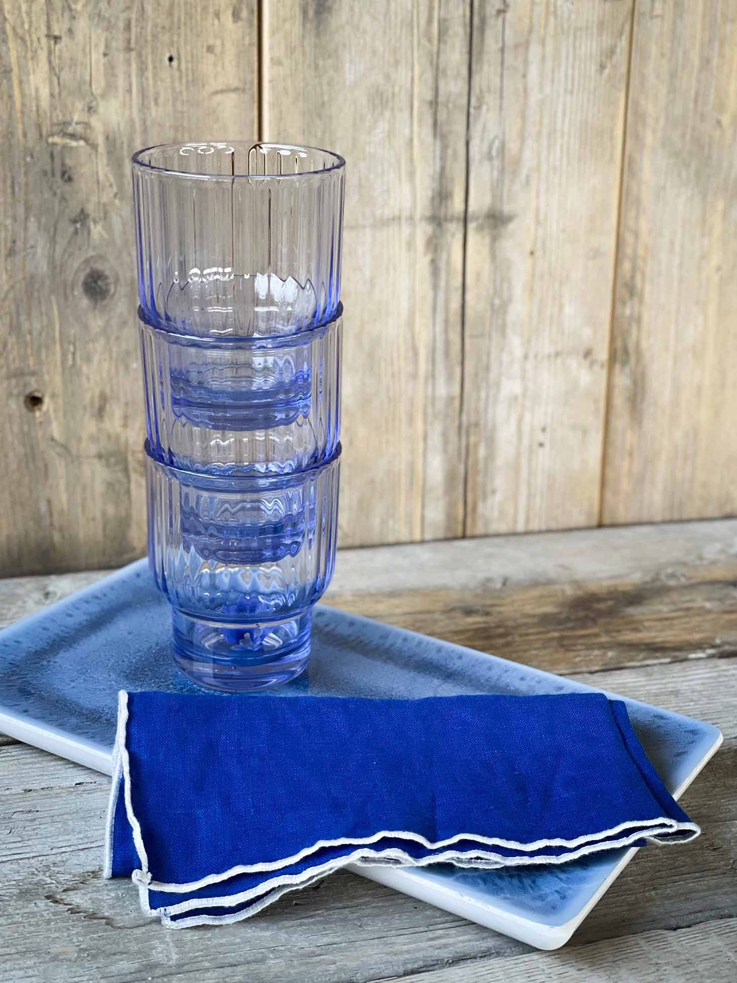 Bicchiere caratterizzato da righe verticali in colore blu trasparente. e' realizzato in metacrilato top quality, resistente ai raggi uv e riciclabile al 100%. non compatibile con le creme solari. il materiale usato dona loro leggerezza e praticità. resistente agli urti e adatti all'uso alimentare, è ideale per essere utilizzato all'esterno per: pic nic, barbecues, feste in barca o in giardino, pranzi o cene all'aperto. ai fini pratici i bicchieri in metacrilato risultano una validissima soluzione in quanto la plastica monouso sarà vietata e il vetro, in caso di rottura, è pericoloso in luoghi come spa , piscine, aree wellness e manifestazioni pubbliche. lavabile in lavastoviglie utilizzando un detergente neutro, alla temperatura massima di 60 gradi, nel ripiano superiore della macchina. asciugare con un panno morbido dopo il lavaggio. non utilizzare spugne abrasive. capacità nominale: 400 ml