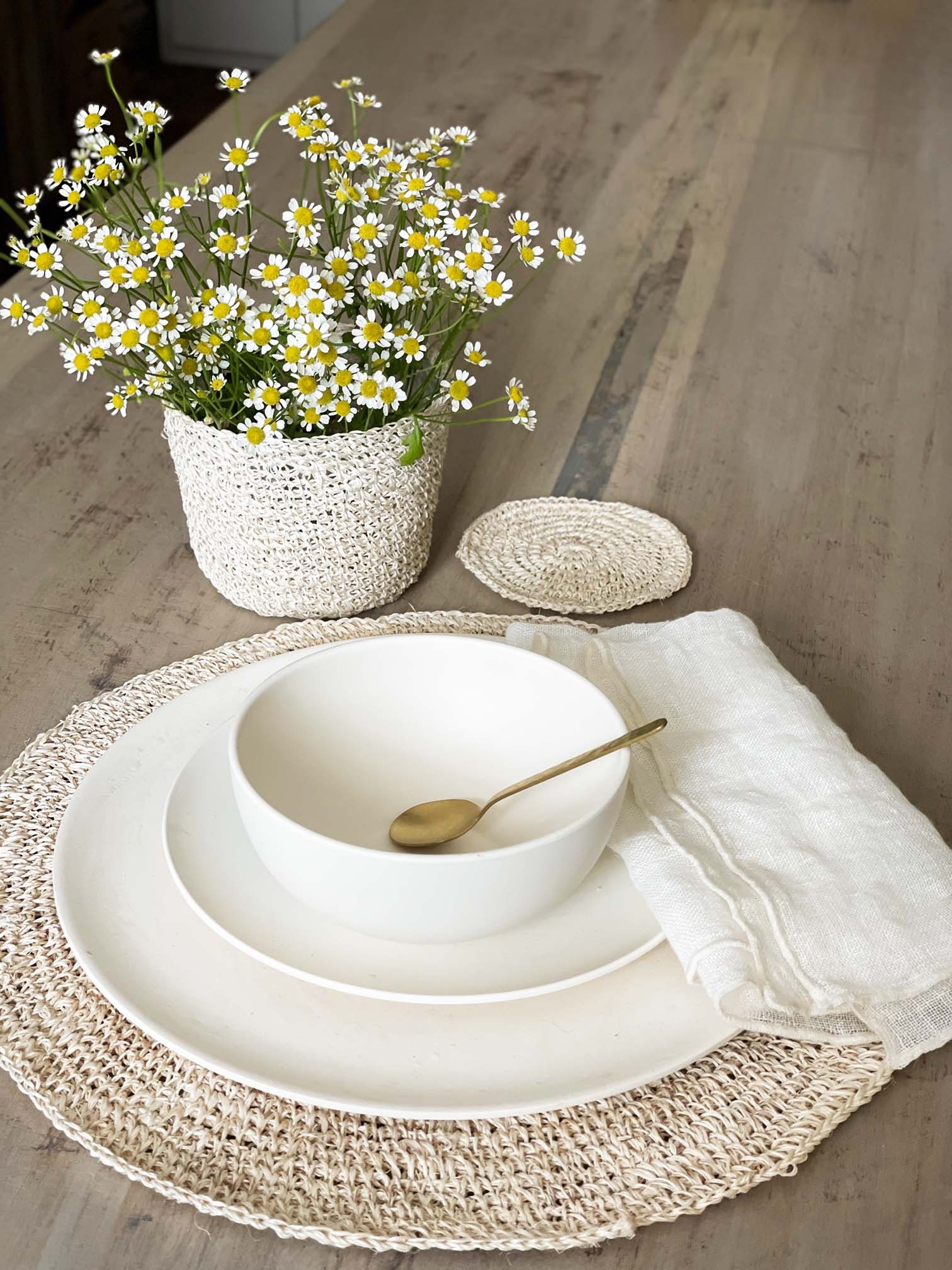 Cachepot uncinetto abaca interno plastica bianco d12 h10 cm