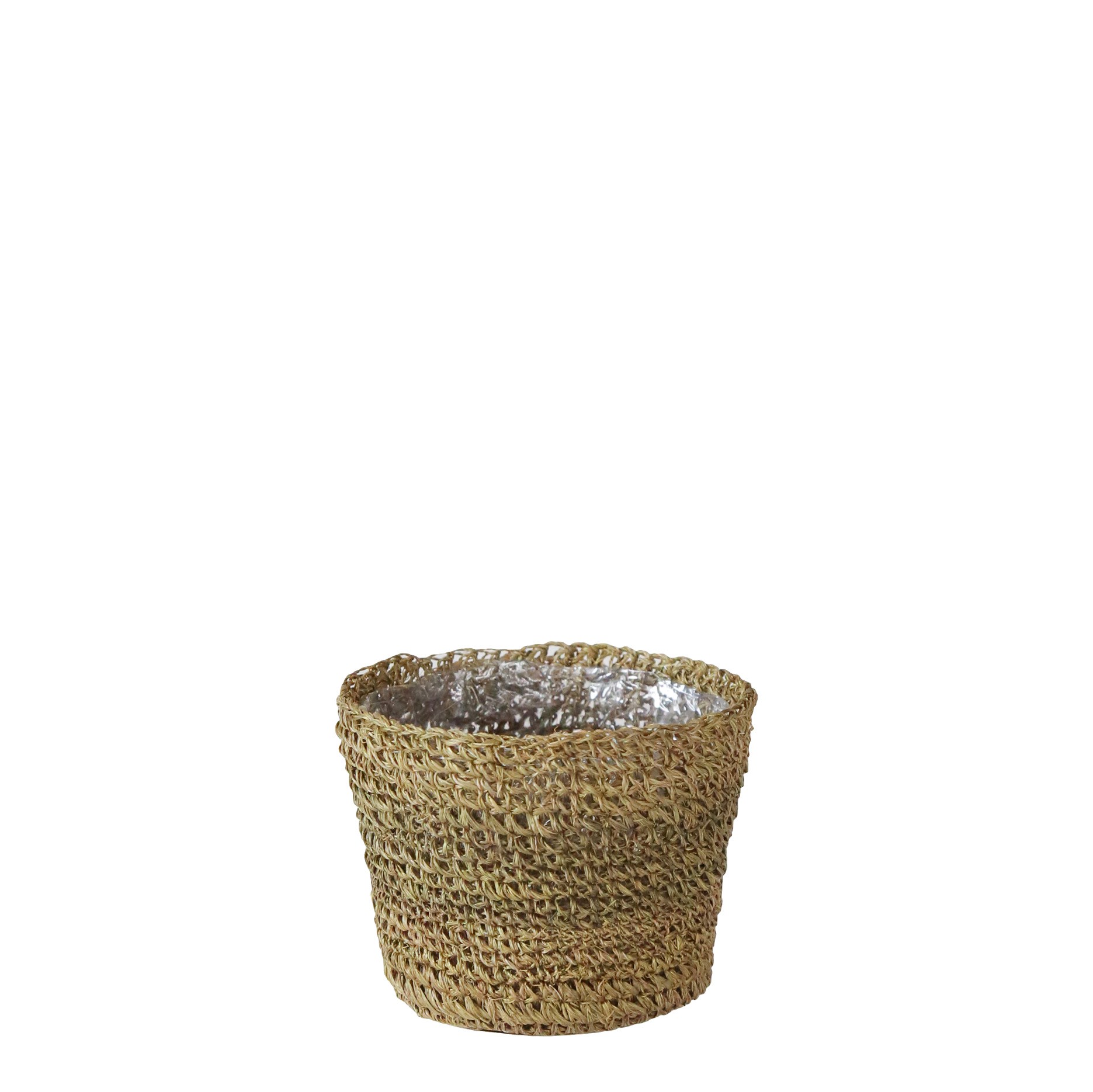Cachepot uncinetto abaca interno plastica lino d12 h10 cm