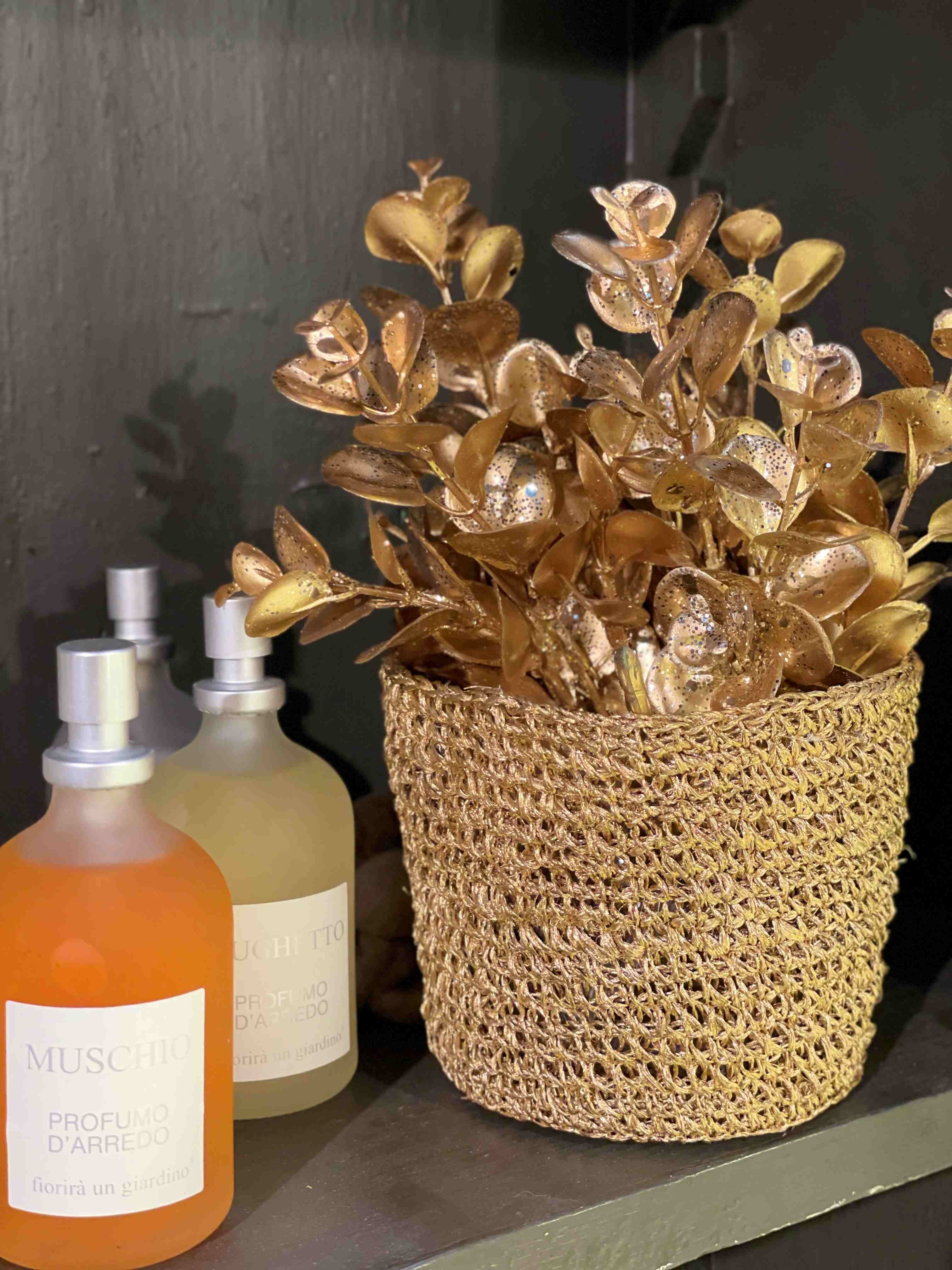 Cachepot uncinetto abaca interno plastica gold d12 h10 cm