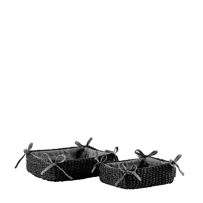 Set 2 cesti bassi in abaca nero con fiocchi 17 x 15 h5.5 cm