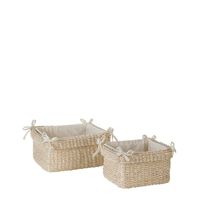 Set 2 cesti in abaca bianchi con risvolto e fiocch 18 x 21 h10.5 cm