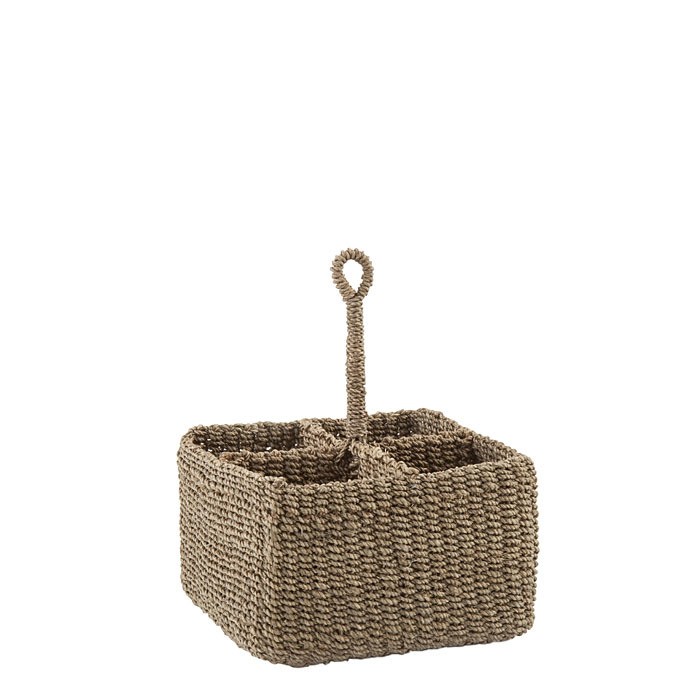 Cesto big in abaca lino con 4 scomparti e manico 21 x 21 h10.5 cm
