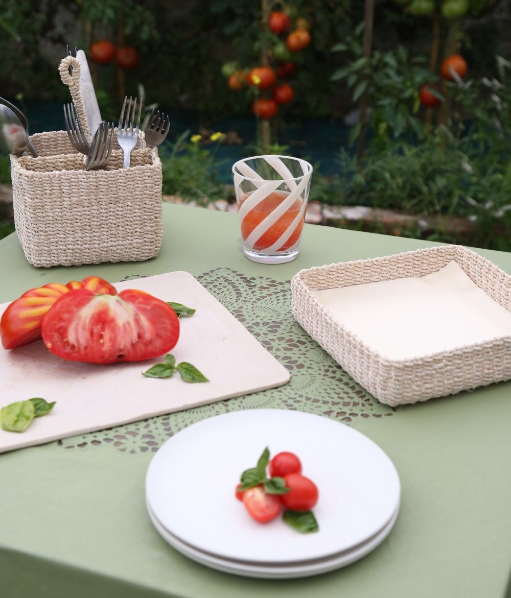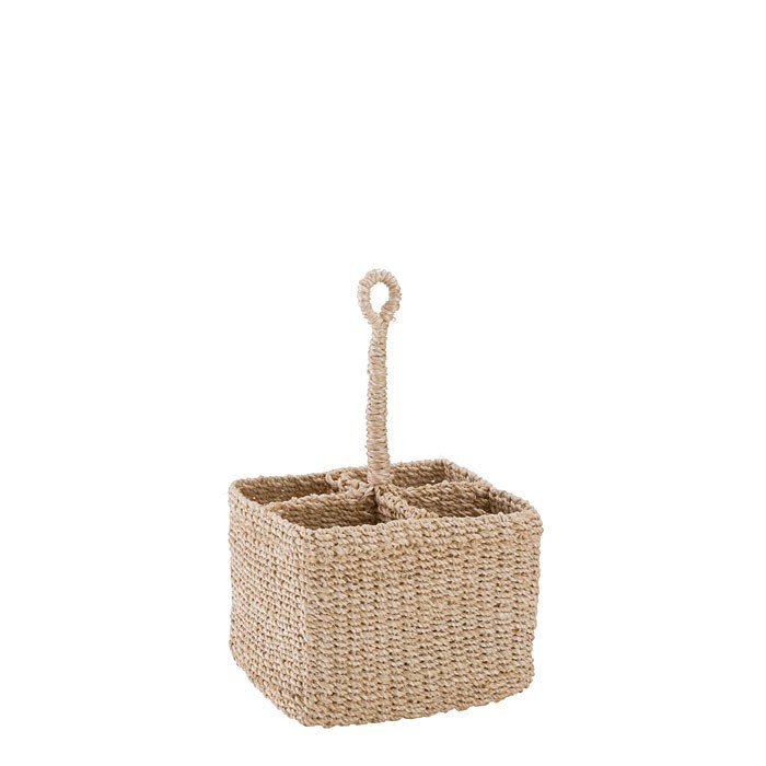 Cesto in abaca bianco con 4 scomparti e manico 16 x 16 h11 cm
