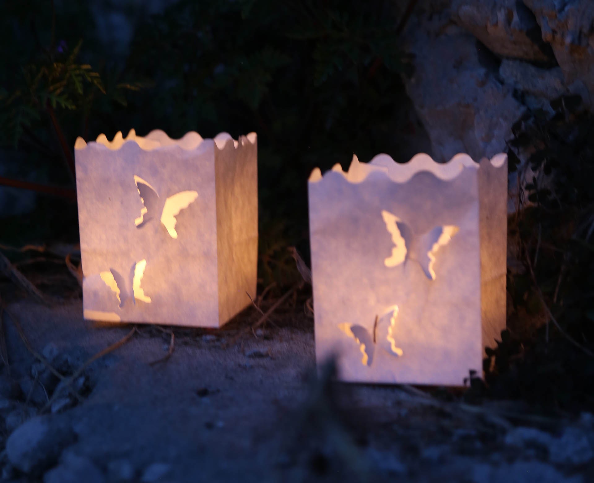 Set 10 mini lanterna carta ignifuga con farfalle 7.5 x 7.5 h10 cm