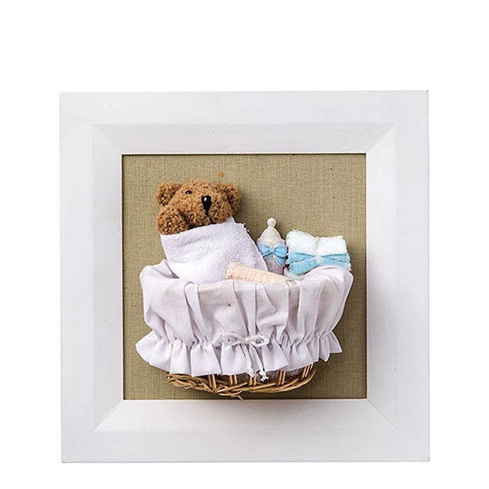 Quadro con orsetto in culla (azzurro) 27 cm