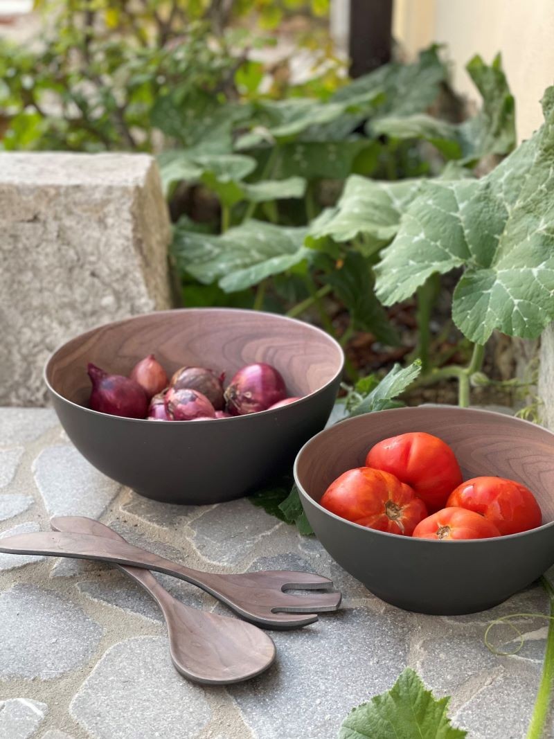 Ciotola+posate fibra bamboo simil corteccia marron d28 h11 cm