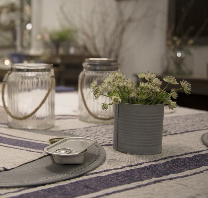 Barattolo in latta righe orizzontali con vetro d7 h7 cm