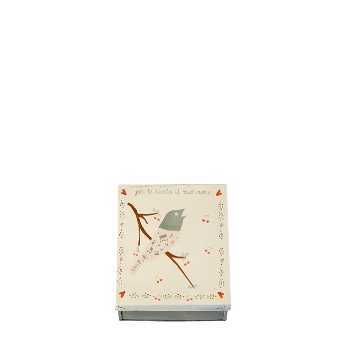 Box latta vintage uccellino note "per te canta..." 13 x 15 h7.5 cm