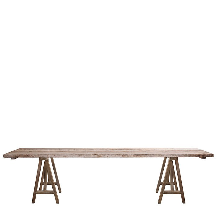 Raw plank table with 2 acacia easels 100 x 300 h74 cm