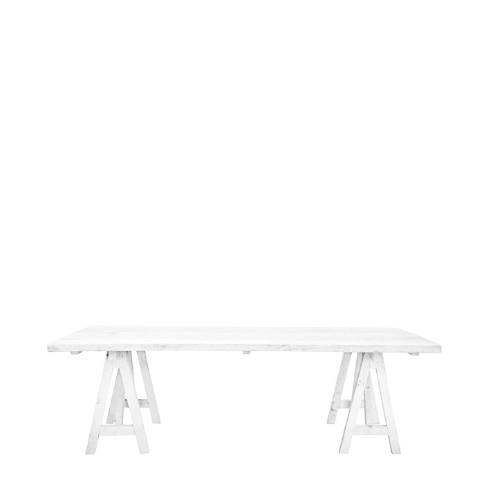 White raw plank table with easeals 200 x 60 h74 cm