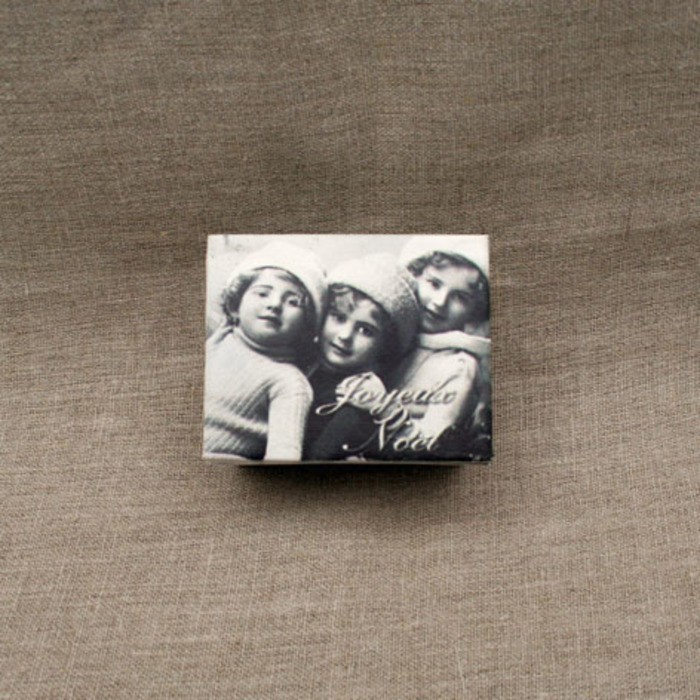 Vintage tin box with 3 children and "joyeux noel" written 7x9 h5 cm