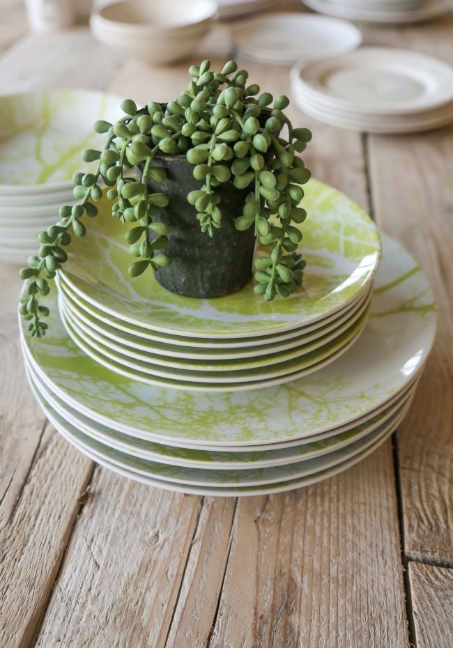 Ceramic green branches soup plate d21 cm