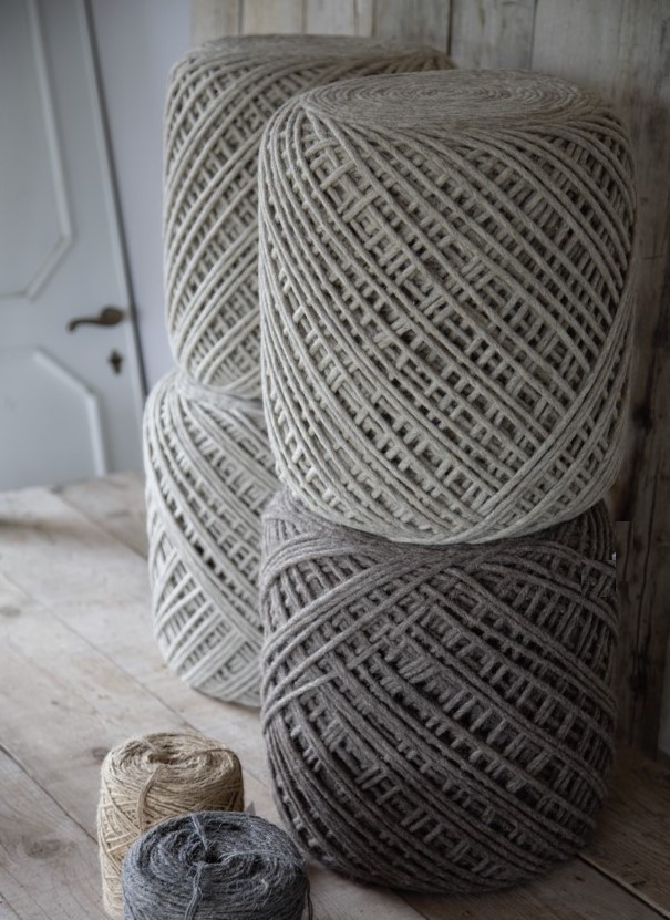 Handmade product in wool. the shape, essential and modern, is reminiscent of a large ball of yarn. multifunctional product: ideal as a seat, as a footrest, as a bag rest or as a side table. useful because easily transportable. available in four colors: turtledove, linen, chocolate and cream.
