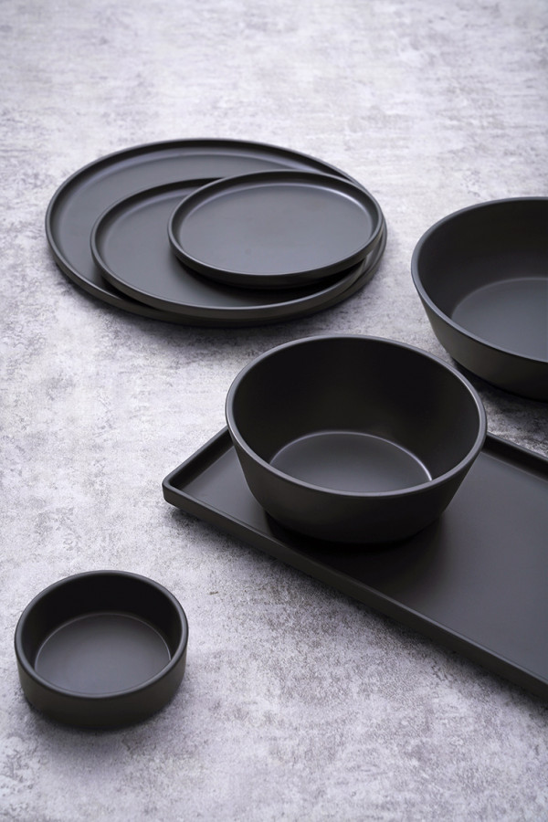 Black melamine plate, 15 cm diameter. This material offers incredible functionality: it is suitable for contact with food, does not absorb odors, dishwasher safe, easy to transport, easy to stack, and can be used in both the refrigerator and freezer, as it withstands temperatures from -20 to +70 degrees Celsius. Not suitable for ovens or microwaves. Ideal for events, catering, outdoor parties, pool parties, campers, picnics, boats, and aperitifs. Used with great success in both private homes and restaurants.