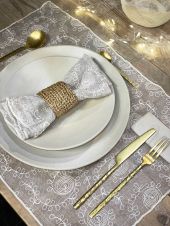 Natural gauze 100% linen napkin with cream decoration 40x40 cm