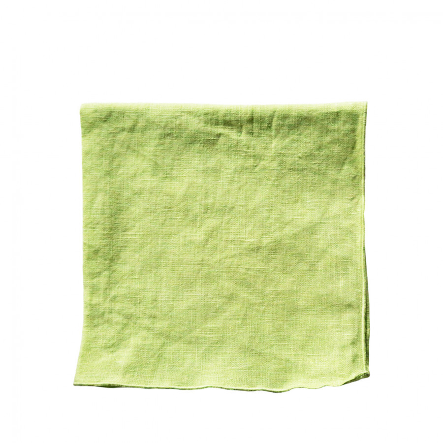 Light green 100% linen napkin with light green hem 40x40 cm