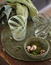 Crochet underplate in natural abaca, HANDMADE. Abaca is a 100% vegetable material, obtained from the Musa Textilis plant. It is therefore 100% NATURAL, ECOLOGICAL and BIODEGRADABLE. Precious and refined. It can be cleaned with a damp sponge or with a dry stain remover. Available in 5 colours: white, linen, green, black and gold. Also available as a placemat and coaster.