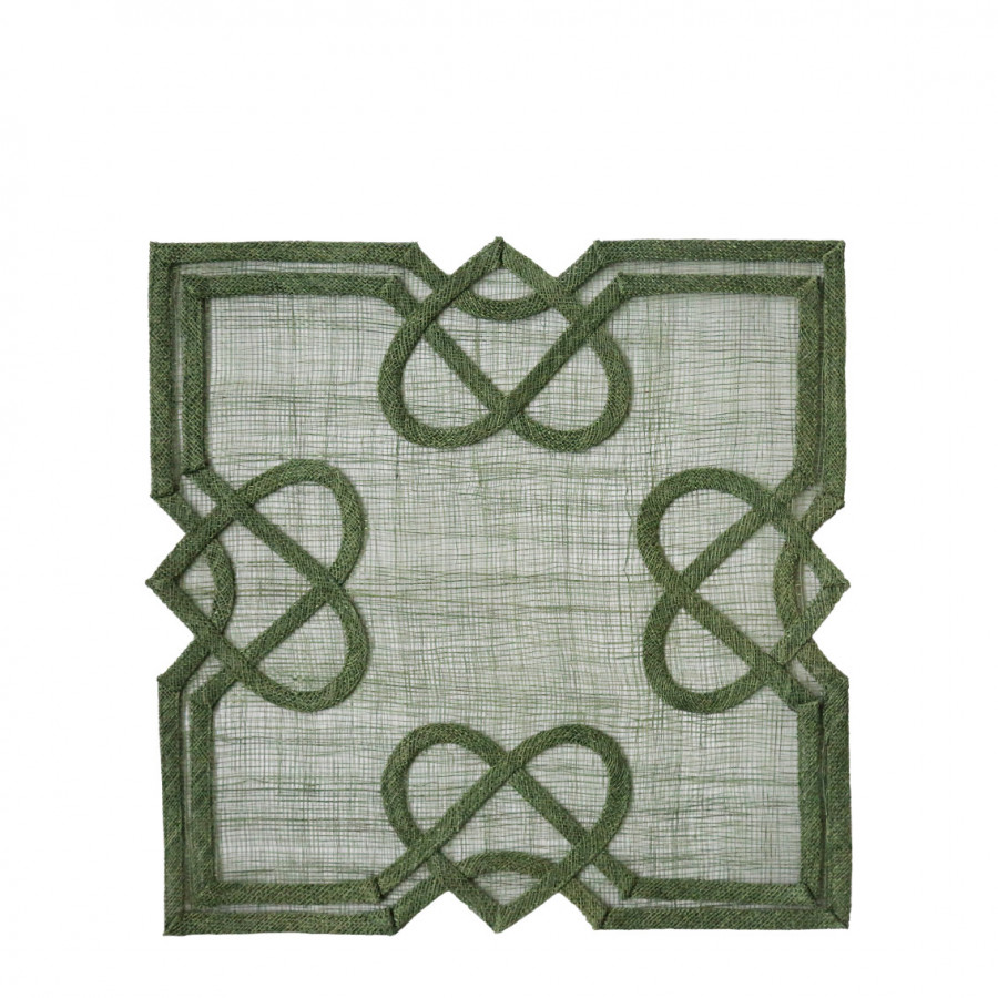 Green abaca square placemat with four hearts 36 x 36 cm