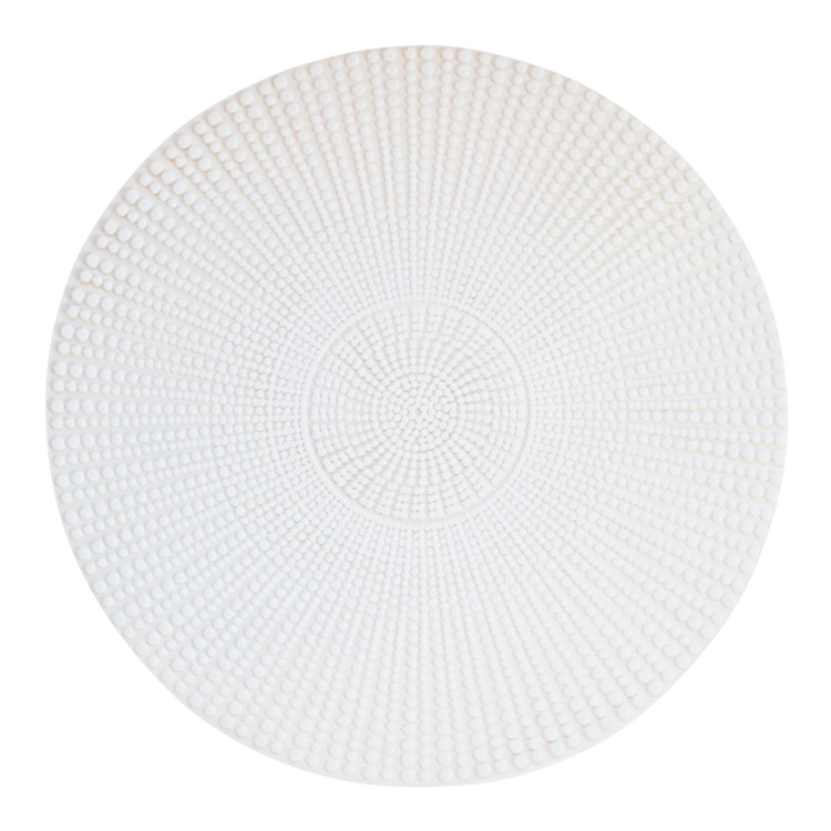 PVC placemat with irregular, raised dots, white. Practical and durable material, easy to clean with a sponge or directly under water. The placemats are waterproof and non-slip. Modern and bright design. Perfect not only for Christmas parties, but also for ceremonies, weddings, events, etc. The placemats are suitable for both indoor and outdoor use.