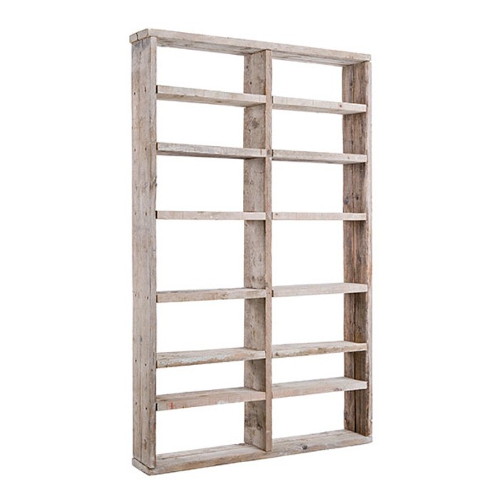 Etagere en bois brut avec 14 compartiments 130 x 24 h200 cm