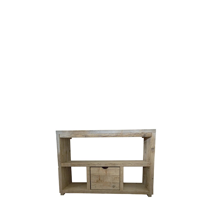 Console en bois brut avec 3 etageres et tiroir 130 x 40 h90 cm