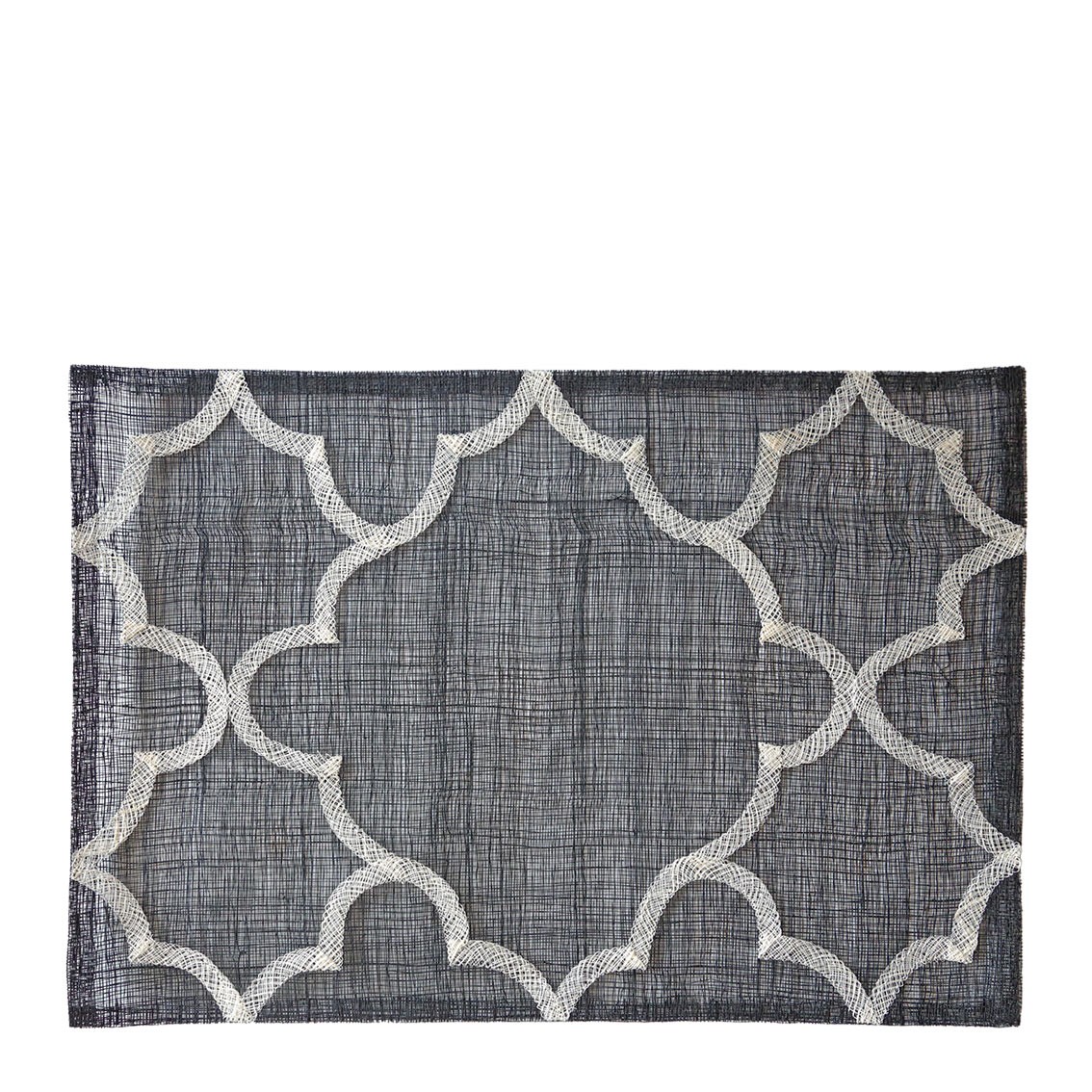 Set de table en abaca noir avec dÉcoration blanche 33 x 48 cm