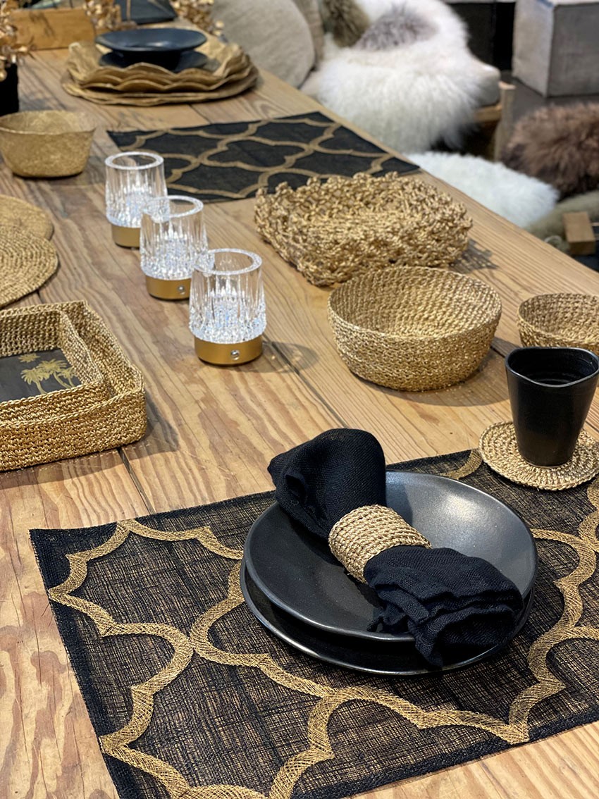 Set de table en abaca noir avec dÉcoration dorÉe 33 x 48 cm