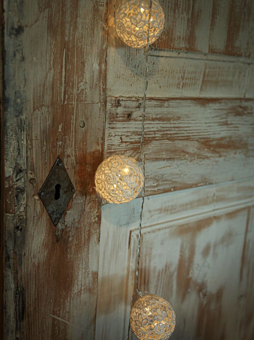 Fil de 10 boules en dentelle couleur blanc avec batterie 225 cm