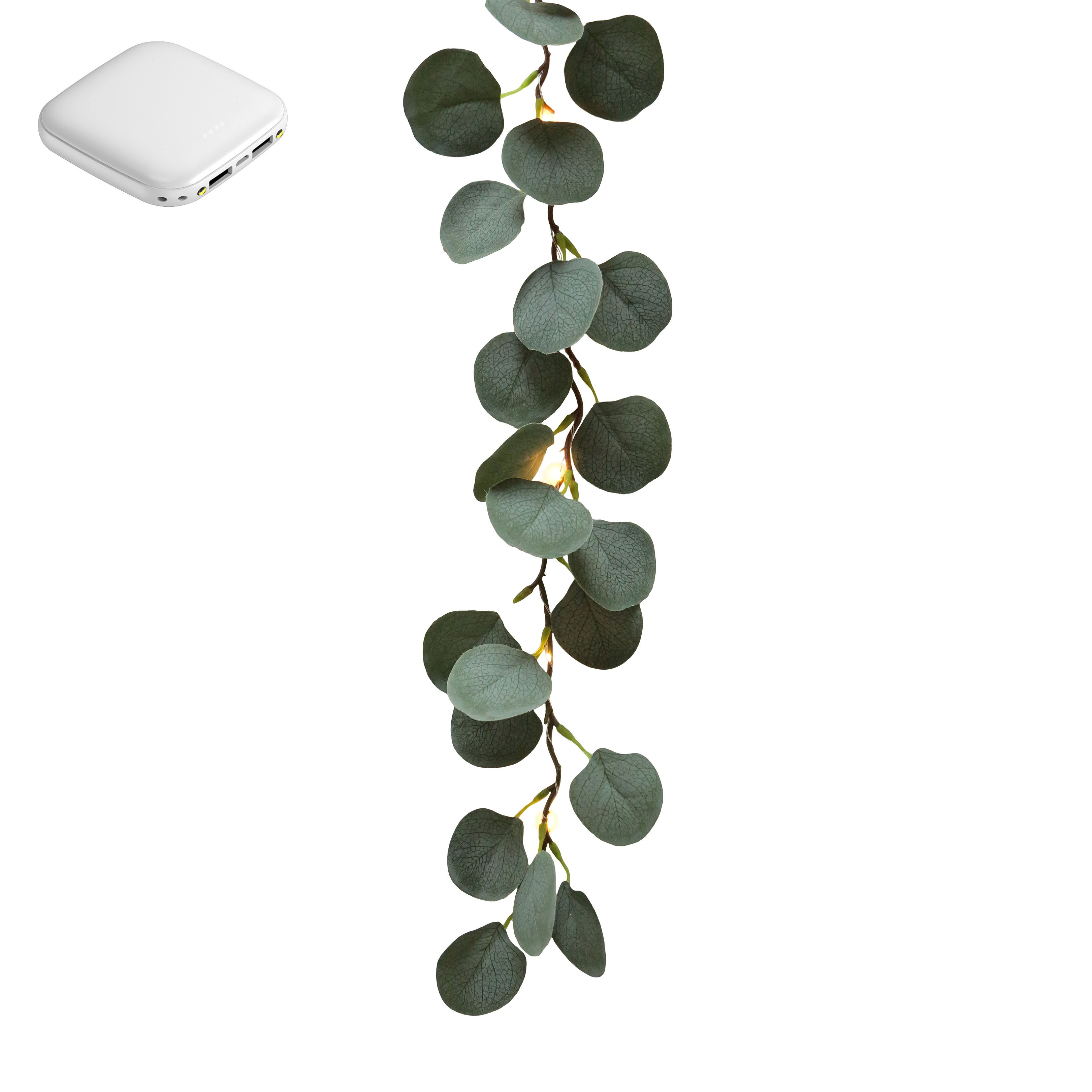 Bande lumineuse feuilles eucalyptus avec 20 led usb et powerbank 190 cm