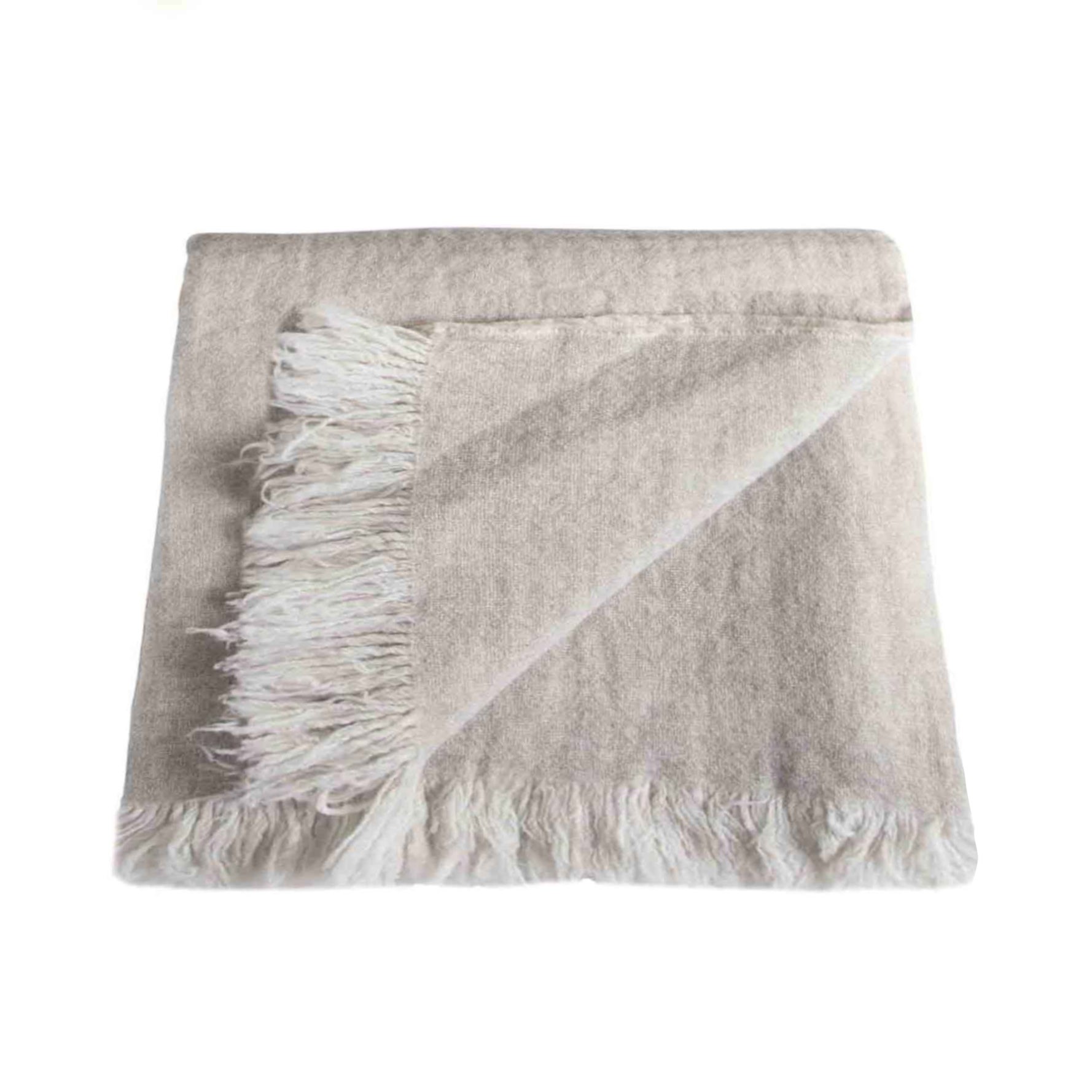 Couverture souple en 100% laine vierge extra-fine avec franges, réversible de couleur gris clair à l'extérieur et crème à l'intérieur, 130x180 cm. sur les deux côtés plus courts, la couverture est décorée par une bordure de franges. le tissu non plat mais légèrement gaufré contribue à rendre la couverture plus précieuse. complément de décoration raffiné et excellente idée cadeau. poids : 280 g/m2. nettoyage à sec.
