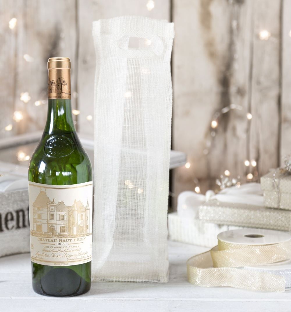 Porte-bouteille en filet d'abaca avec poignees et trou couleur creme 10 x 10 h31 cm