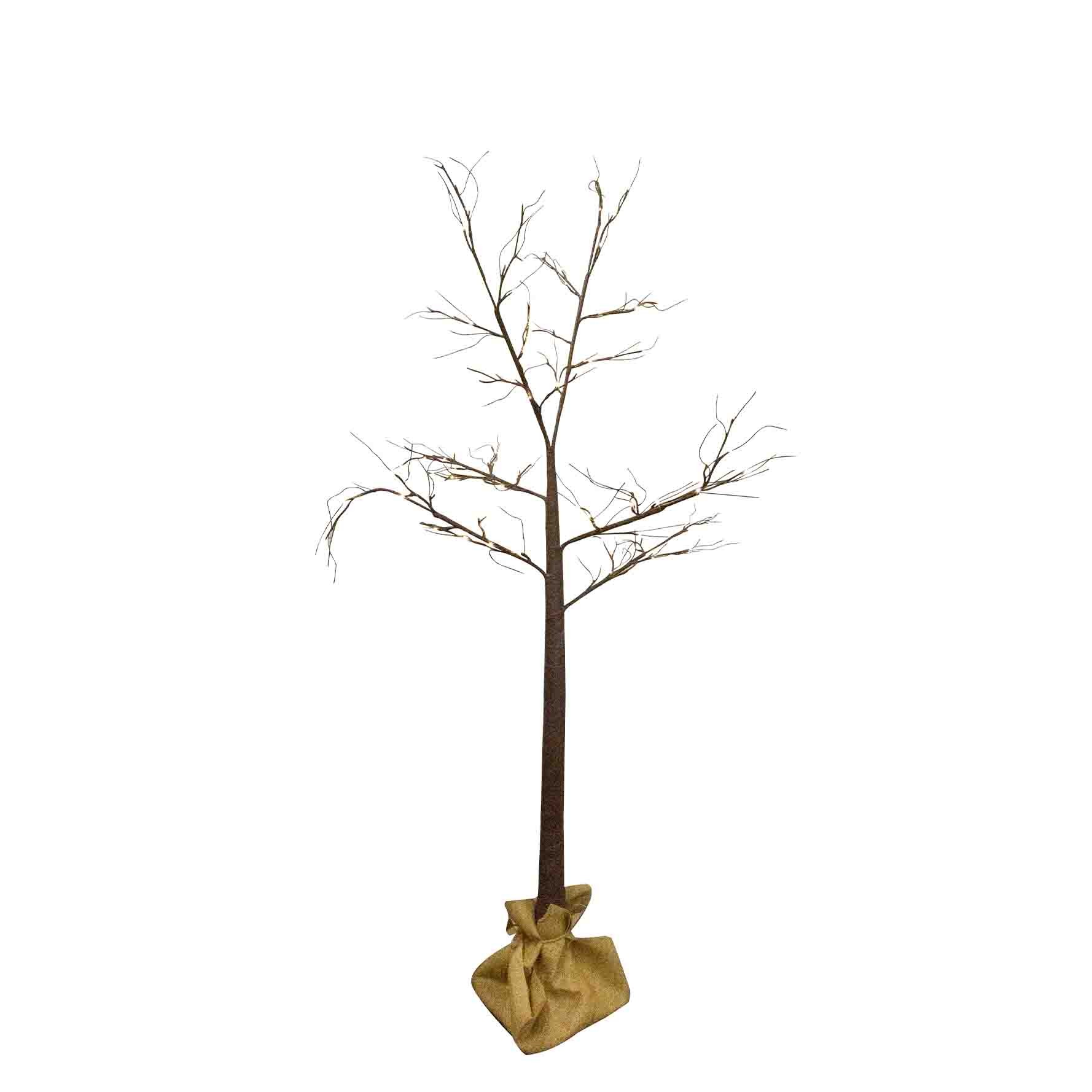 Arbre marron 120 led sur secteur avec sac en jute interieur/exterieur d110 h210 cm