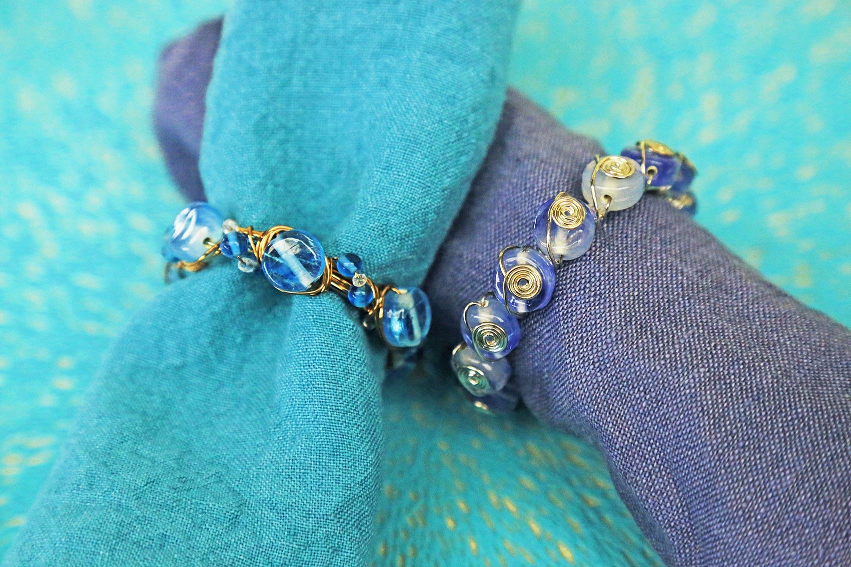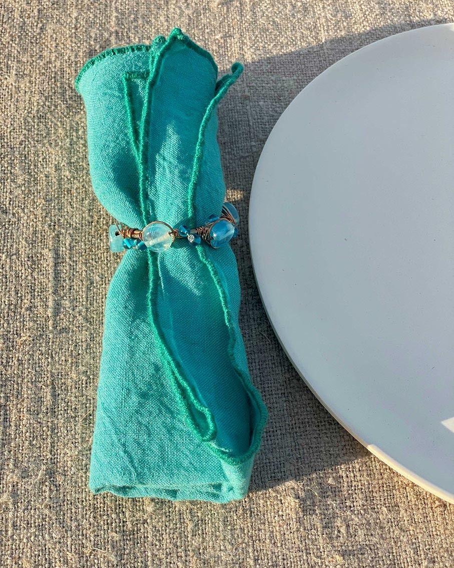 Rond de serviette avec perles bleues d6 cm