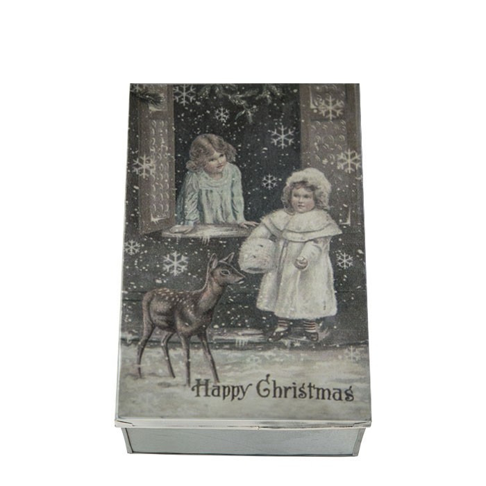 Boite vintage en fer-blanc avec enfants et faon 21 x 32 h12 cm